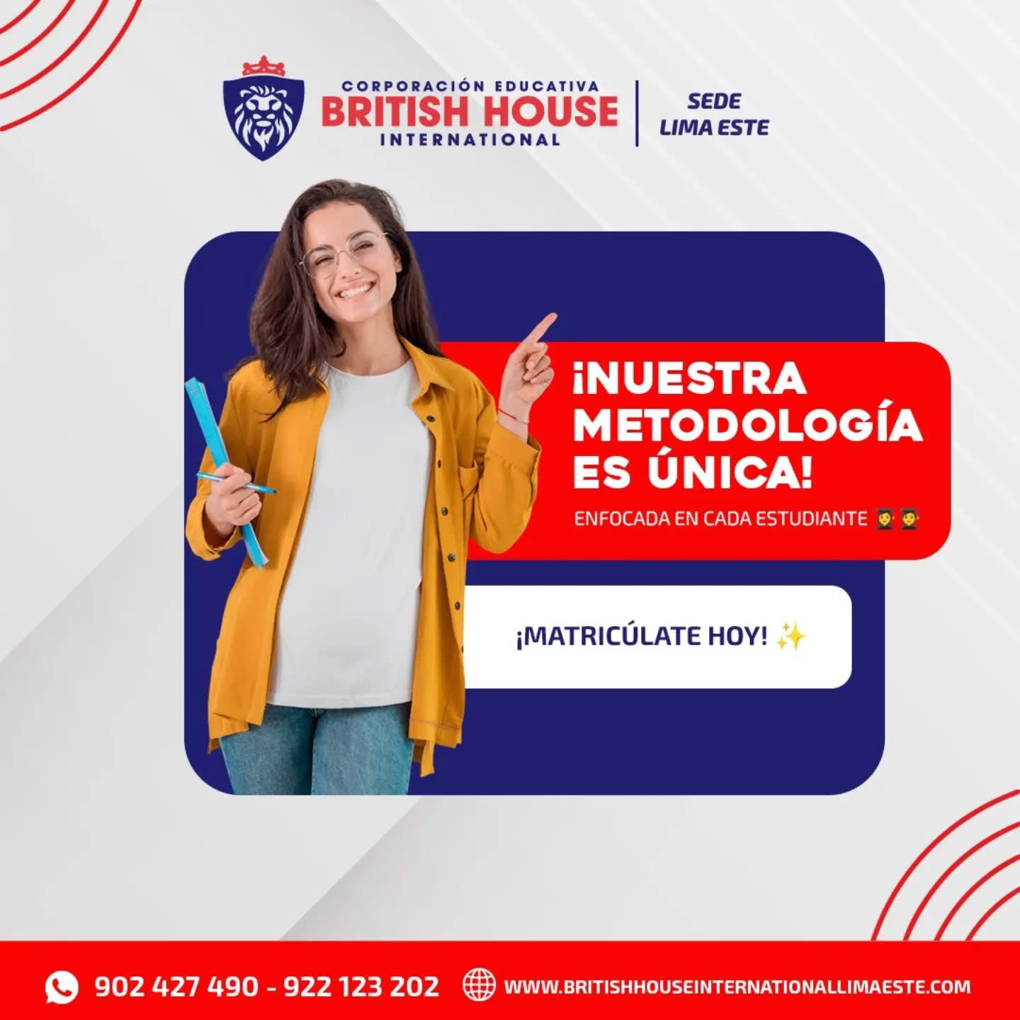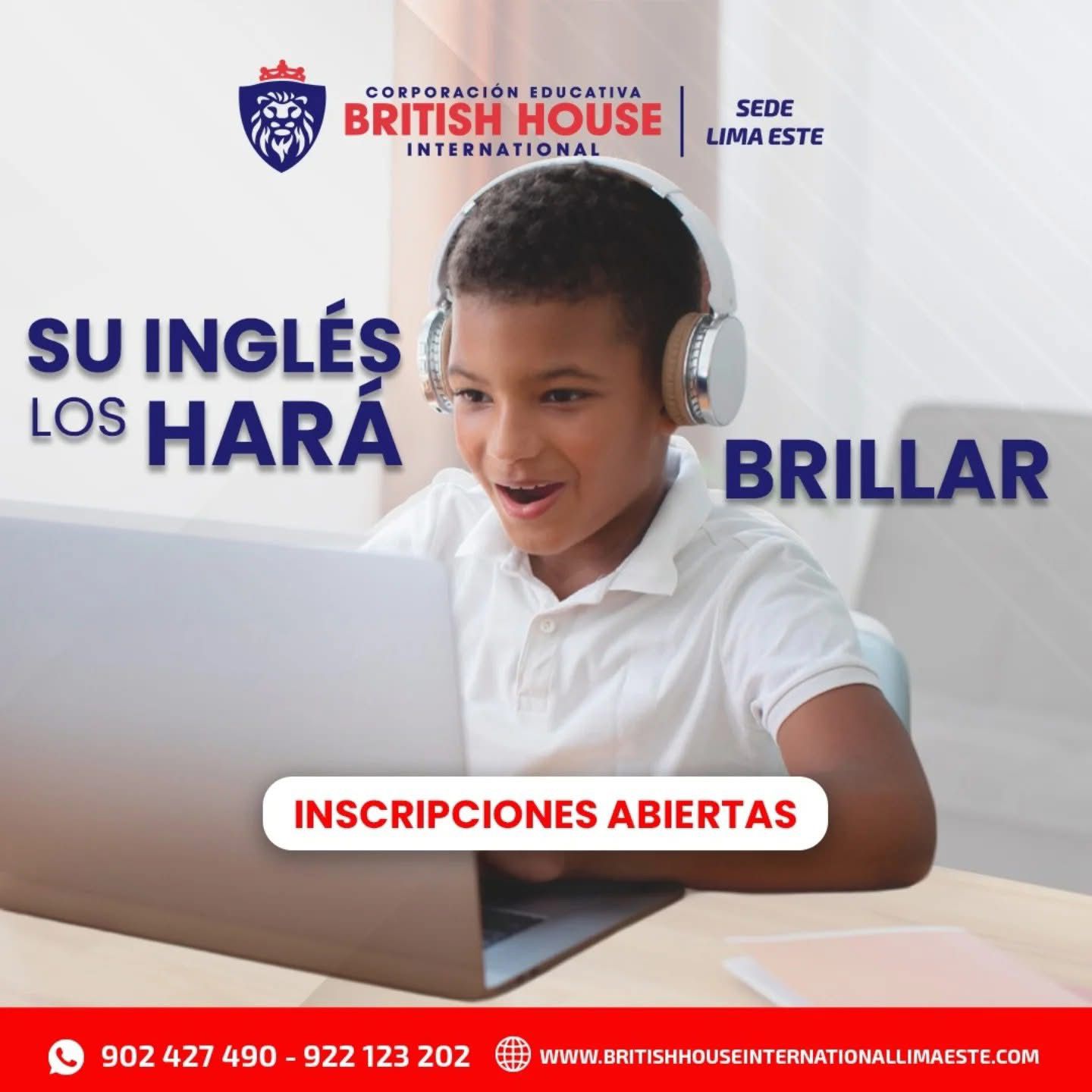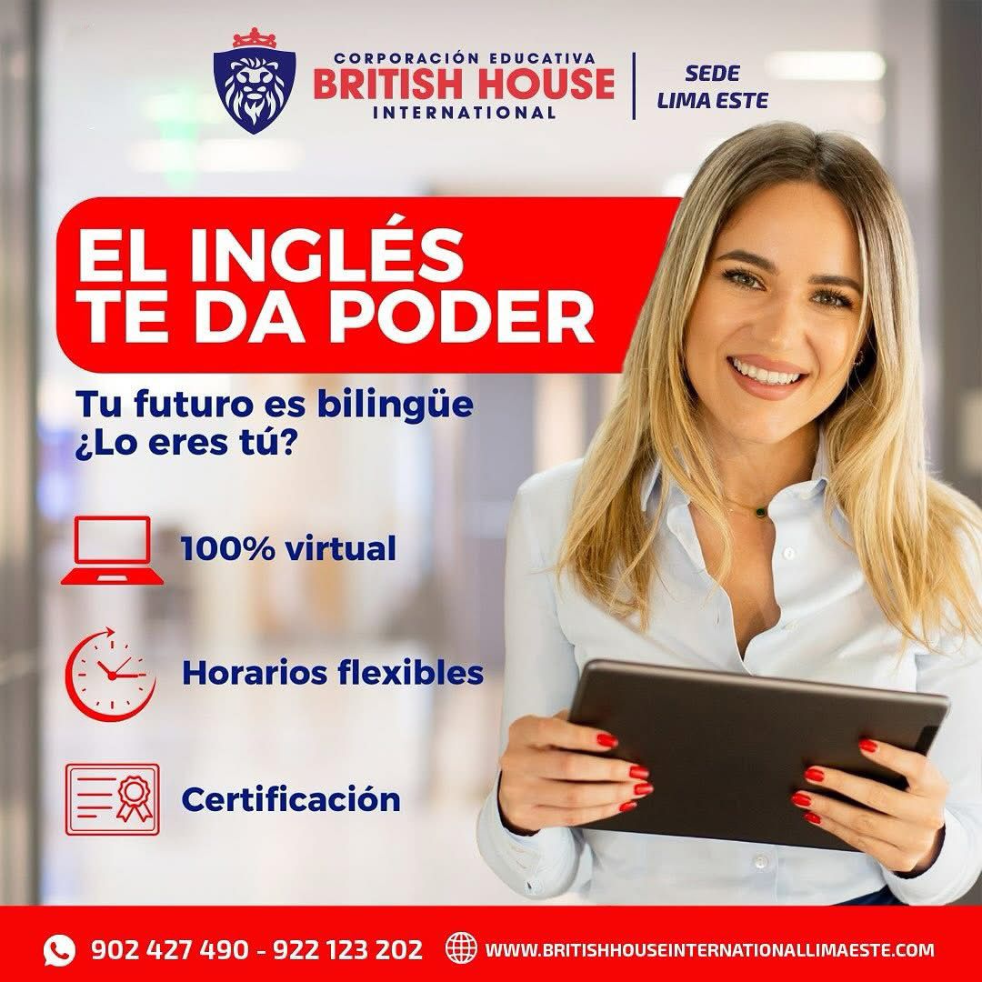 Hola, bienvenido(a) a BRITISH HOUSE INTERNATIONAL LIMA ESTE. 😁😊 ¿Podría brindarnos su nombre completo? 🙌🏻 En breve nos estaremos comunicando con usted.